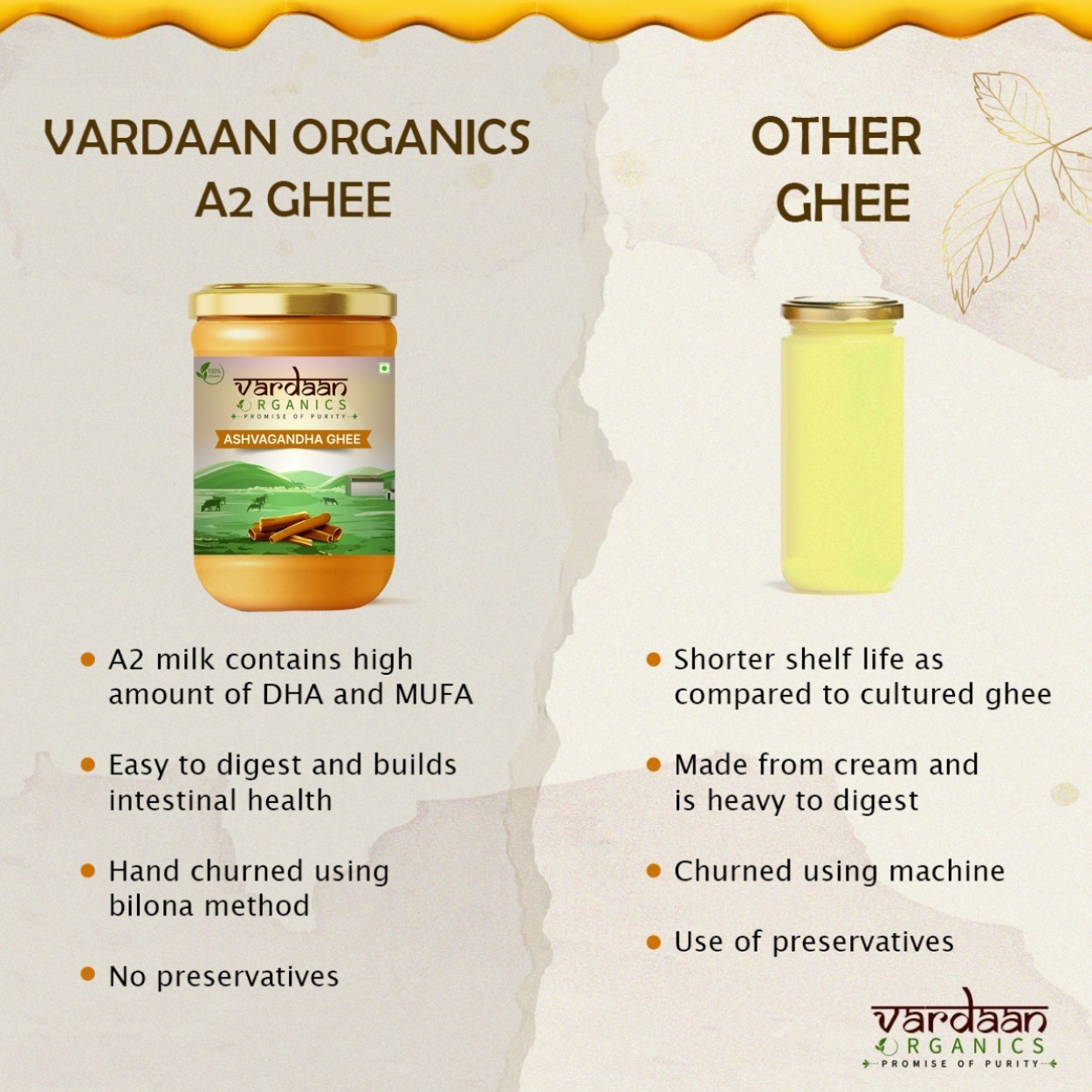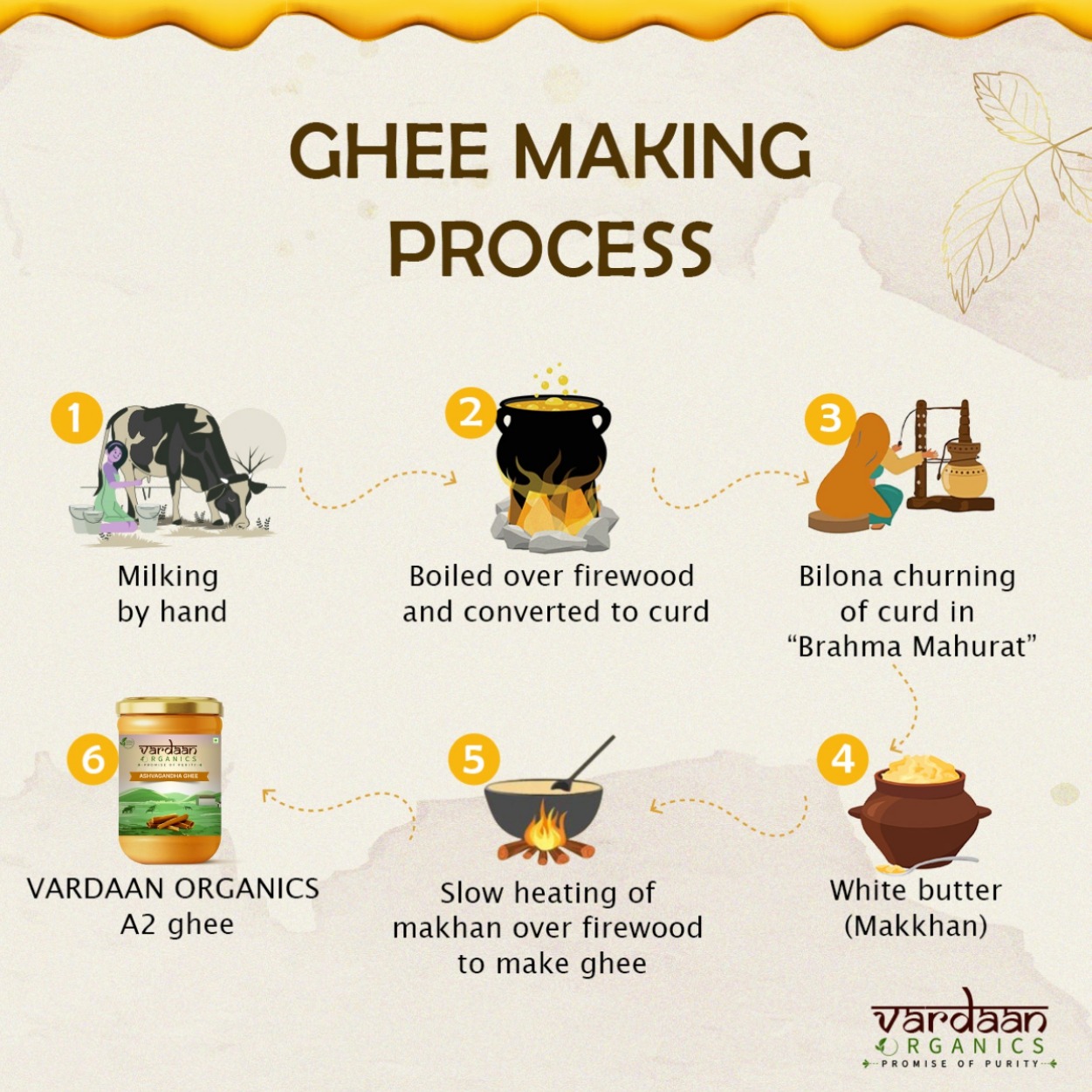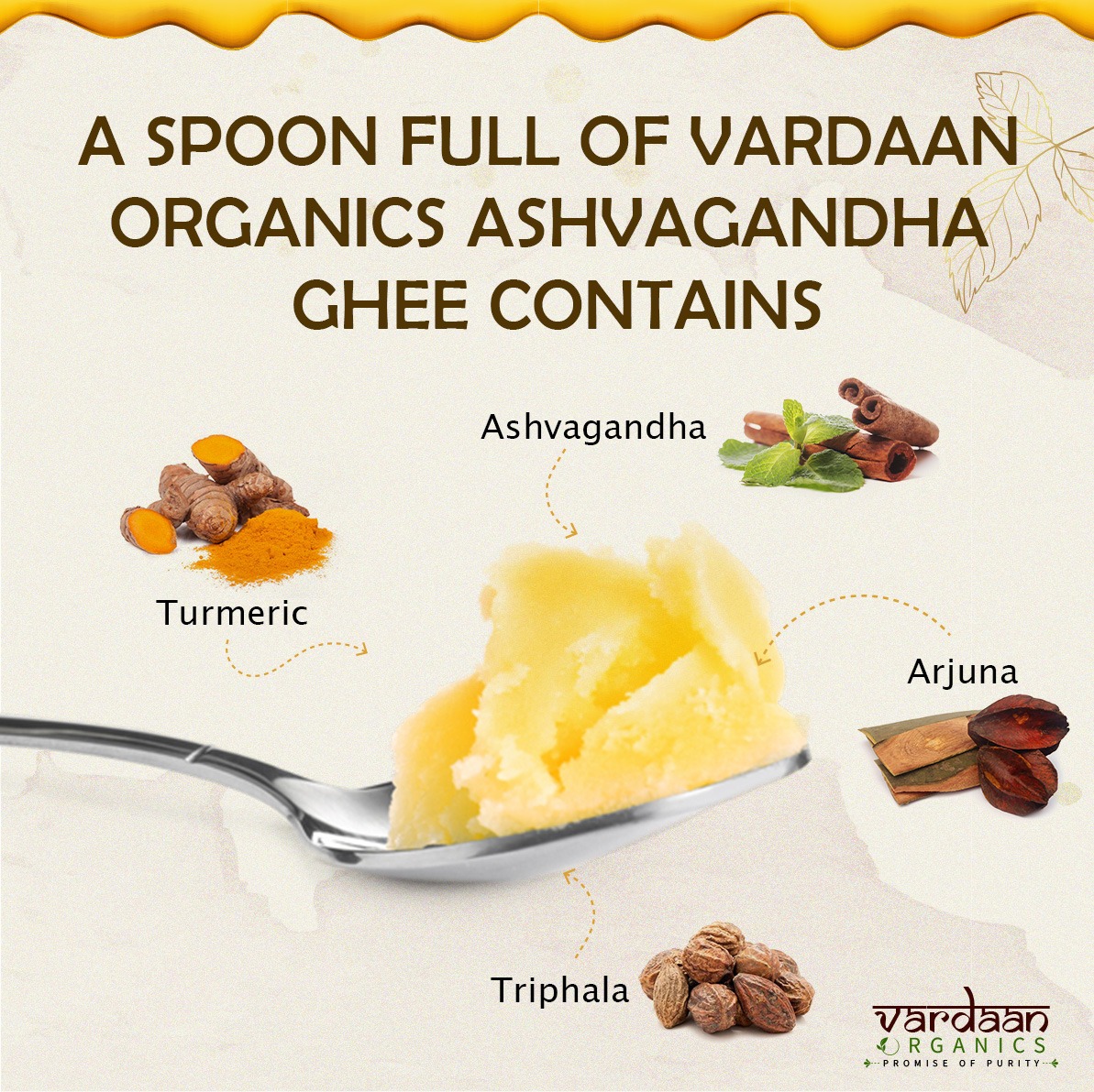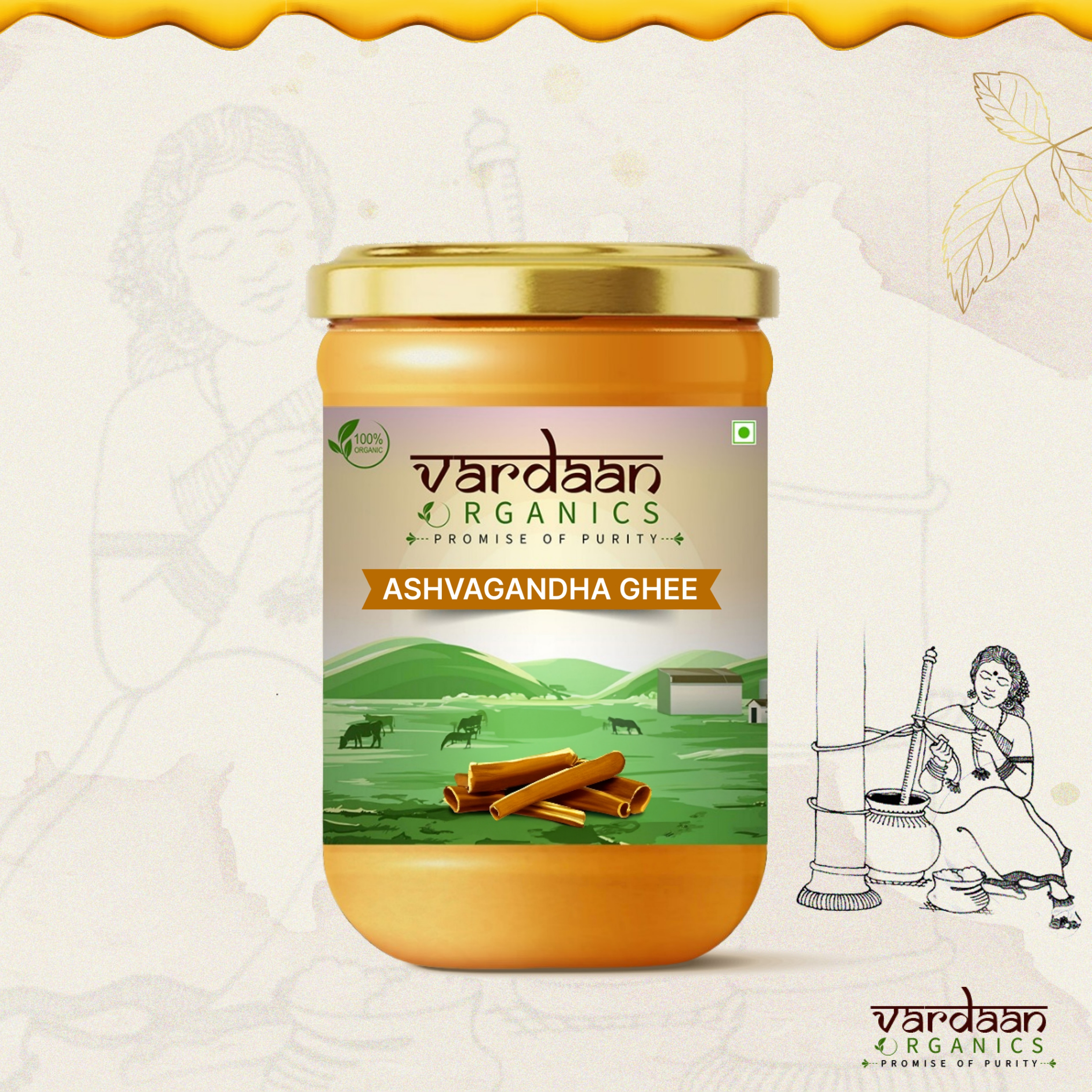 Ghee, a clarified butter, undergoes a slow-cooking process over a flame to separate the fat solids. The clarified liquid is then carefully skimmed and poured into sterile containers. Enriched with sustainably sourced Ashwagandha, this ghee serves to amplify the herb’s efficacy, facilitating its therapeutic properties to penetrate deep into bodily tissues.