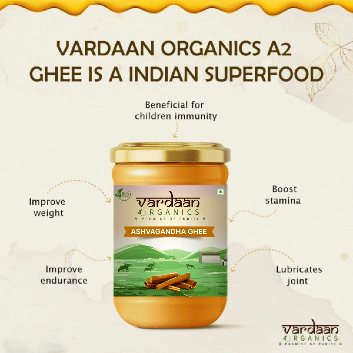Ashwagandha-infused ghee aids in weight management, particularly beneficial for children. It supports…